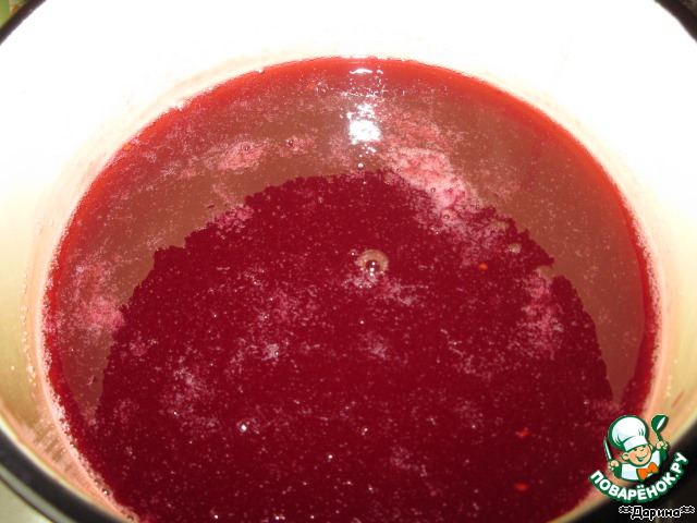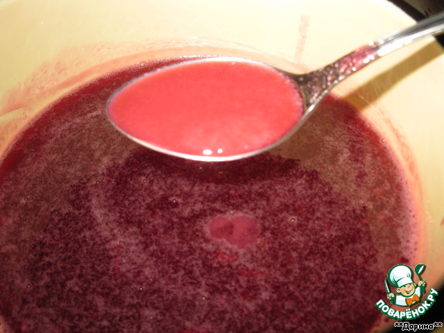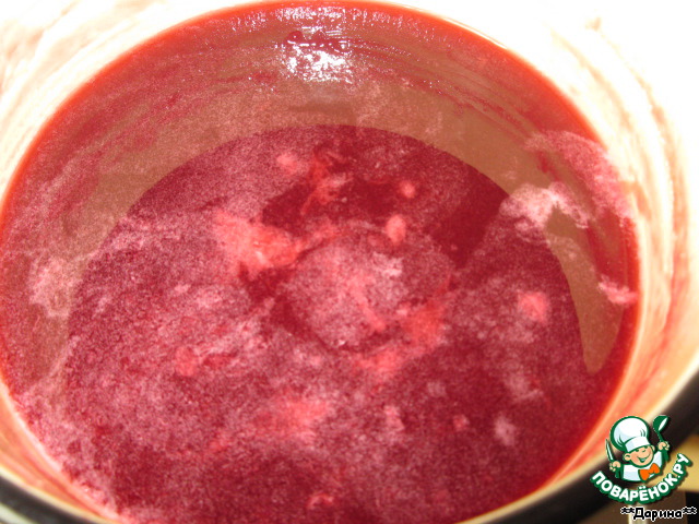 Пюре из ягод добавлять небольшими порциями в сироп, каждый раз хорошо размешивая.