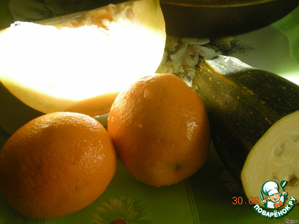 Кабачки и тыкву почистить от кожуры и семечек. Апельсины (я взяла 2 штуки) положить в кастрюльку и прокипятить 5 минут, поставить охлаждаться в холодную воду. Кабачки и тыкву взвесить, столько же берем сахара - 1:1 (у меня получилось 1700 г).