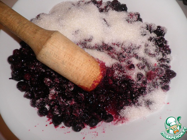 Затем берем деревянную толкушку и начинаем растирать ягоду с сахаром. Можно, конечно, воспользоваться для быстроты и блендером, но это будет не то. Тем более, что при соприкосновении с металлом, часть витаминов будет потеряна. Так что, лучше по старинке.