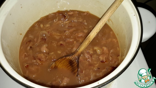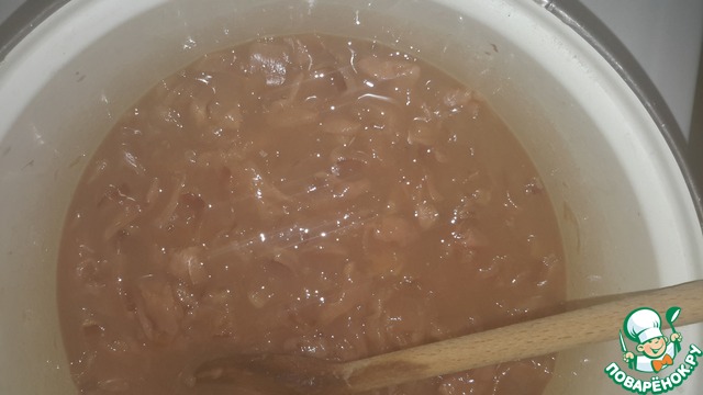 Начинаю уваривать. Личи очень сочные и в процессе варки выделяют много сока. Обязательно находиться рядом с вареньем и постоянно мешать ( как вы видите, я использую деревянную ложку ).