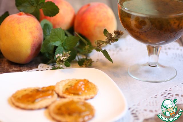 Мелиссу отделяем от твердых стеблей, и пюрируем с 200 г. мякоти персика в блендере.