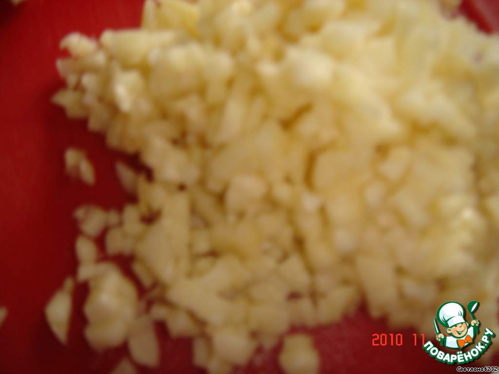 4. За 5 минут до готовности добавить уксусную кислоту и измельченный чеснок.