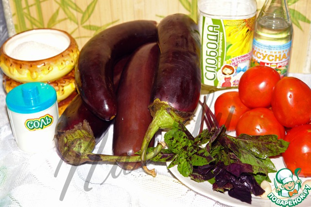 Подготовим необходимые ингредиенты. Баклажаны, базилик и помидоры помыть, чеснок очистить.
