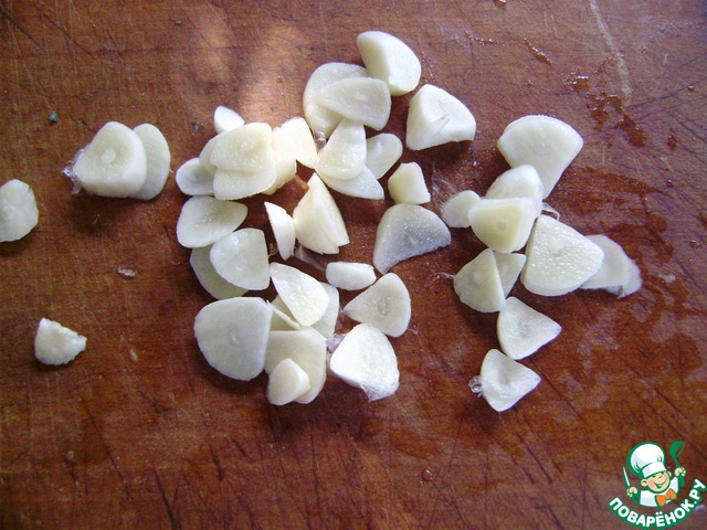 Чеснок нарезаем пластинками.