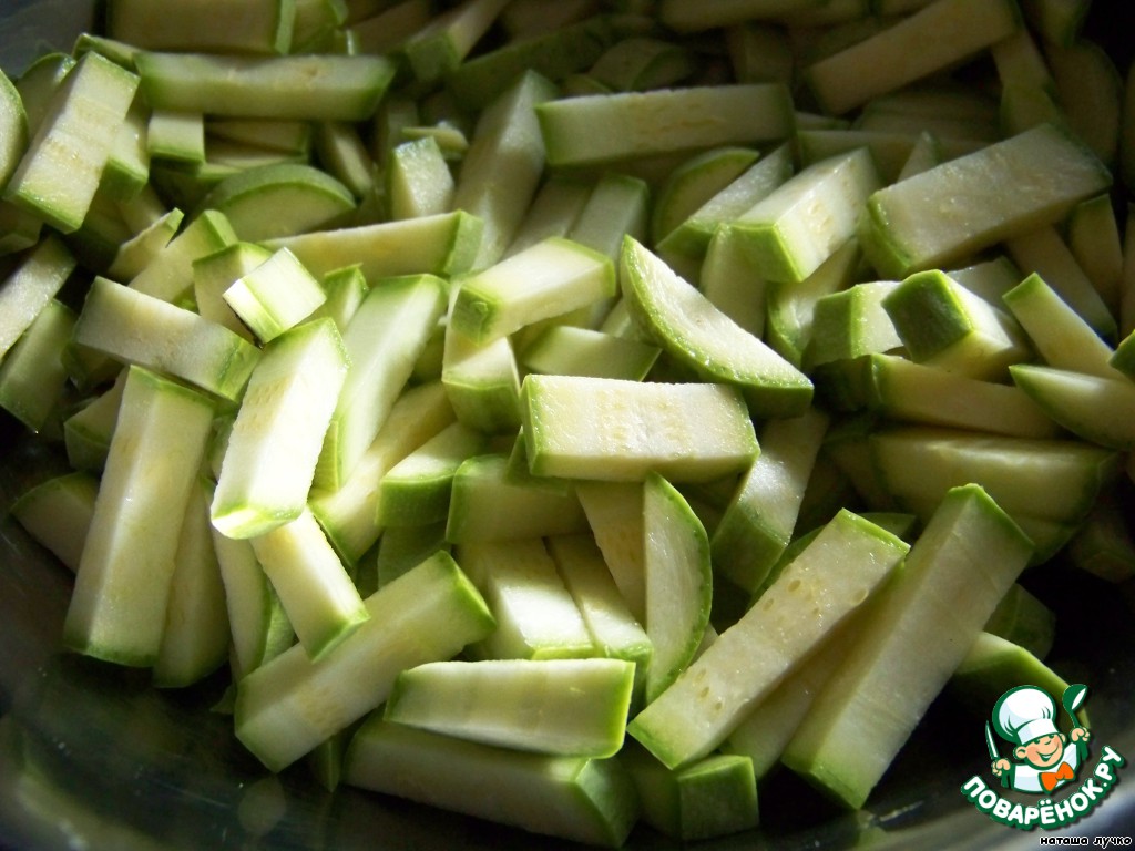 В первую очередь подготовим кабачки - у меня маленькие молоденькие по 15-20см, если плоды старые, то лучше очистить кожуру и удалить семечки
