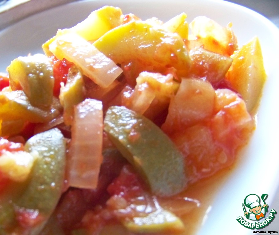 | Вкусный овощной салат и простая заготовка на зиму. Чем мне нравиться этот салат, так это тем, что совсем немного времени проводишь у плиты. Не надо жарить всe по отдельности - забрасываешь продукты и гуляешь, только не забывай помешивать время от времени. Минимум усилий - максимум удовольствия! |