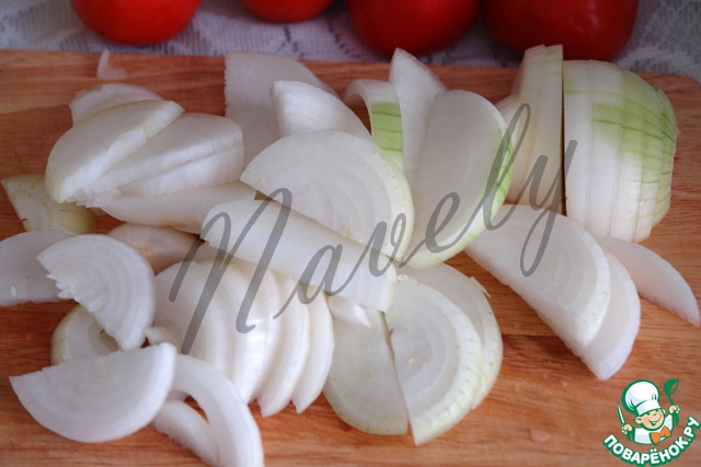Тем временем, лук нарезать соломкой, не очень тонко.