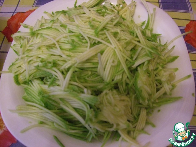 Молодые кабачки на тёрке. Я очень давно использую корейскую тёрку, оч нравится-красиво получается.