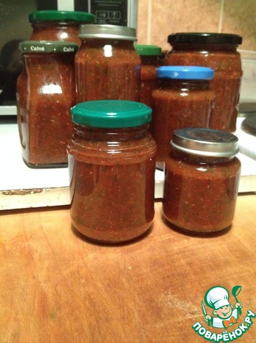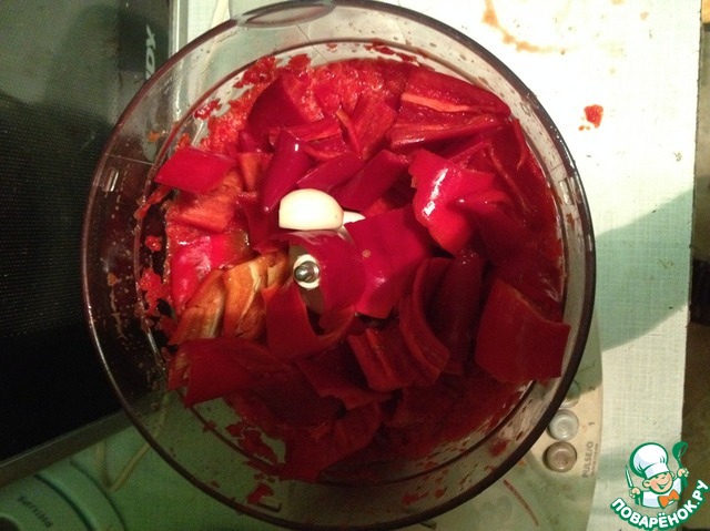 Жгучий перец и болгарский дополнительно пробить погружным блендером, чтоб была более однородная консистенция.