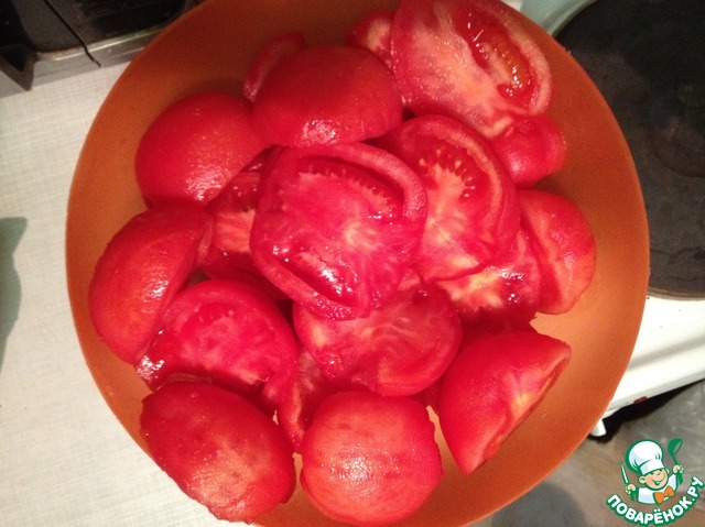 Помидоры помыть, ошпарить кипятком, очистить от кожицы