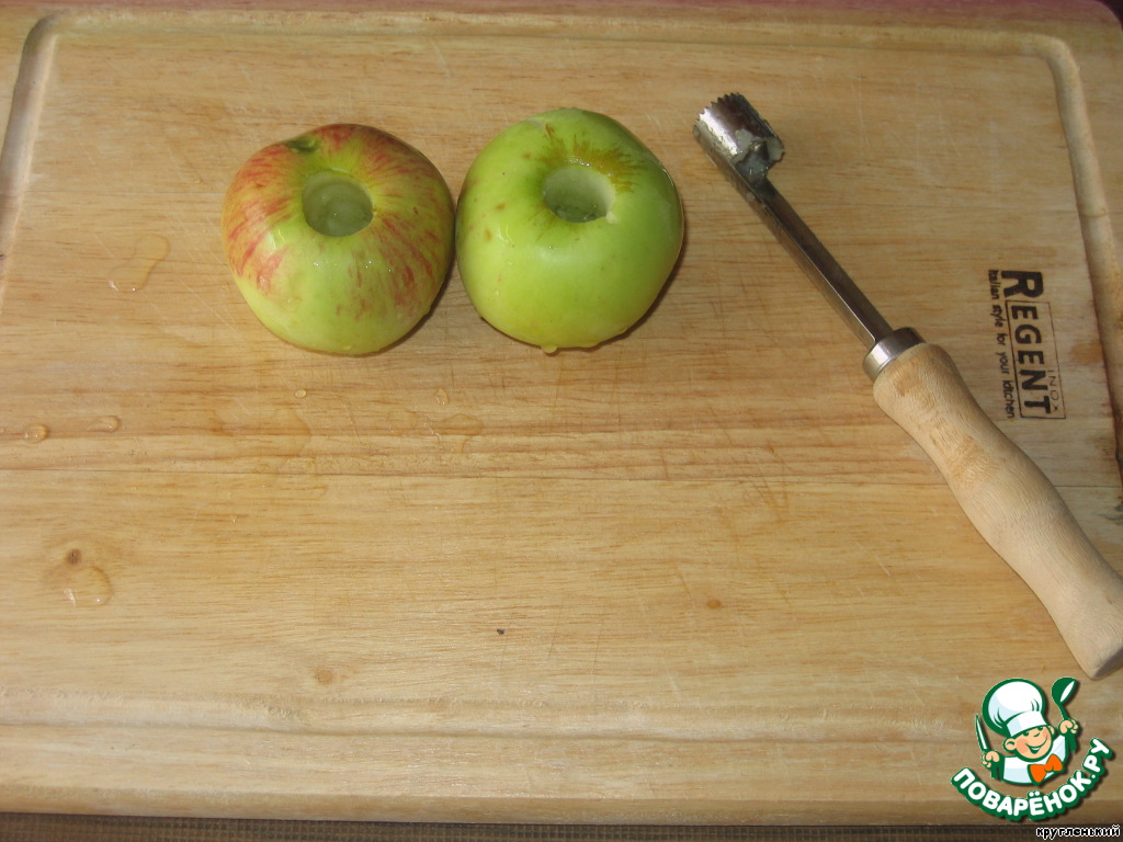 Если яблоки большие, то разрезать их на 4 части. У меня яблочки маленькие, нового урожая, поэтому я только вырезала сердцевину.