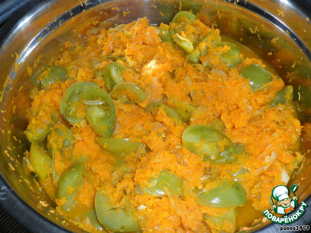 | На сайте есть несколько рецептов салатов из зеленых помидоров, но мой немного отличается от них - в его состав не входят ни сахар, ни уксус. Салат придумала (может, и узнала у кого-то, но я этого не знаю) моя бабушка для дедушки, когда он заболел диабетом. Правда, после первого же сезона выяснилось, что готовить его надо на всю семью и много. Вот так и живет он в нашей семье уже больше 15 лет. |