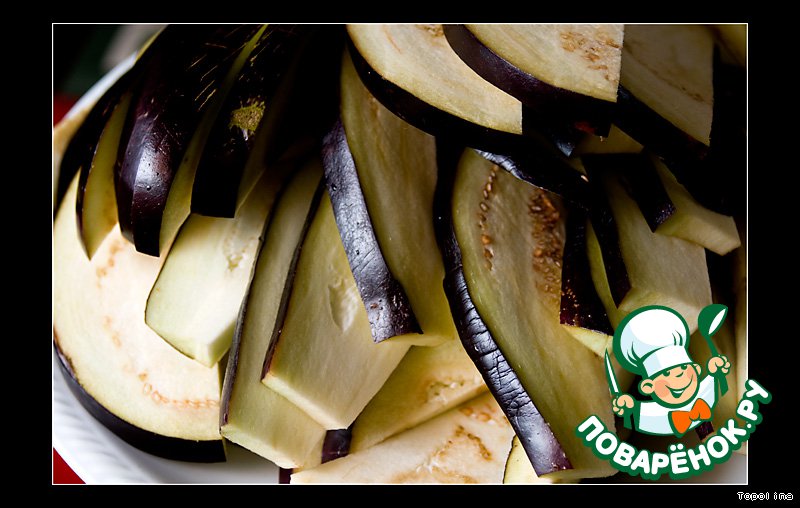 Баклажанчики нарезать язычками, не слишком тонкими, пересыпать солью и оставить их "потеть", теряя свою излишнюю для наших целей природную влагу.