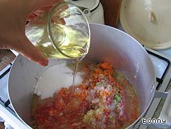 дабавить уксус и разложить по стерильным банкам (бутылкам от соусов, соков)