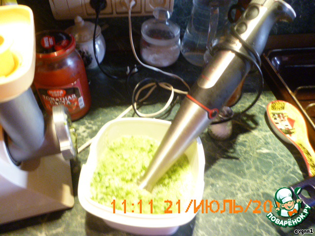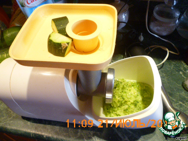 Если хочется более нежного вкуса, можно после мясорубки кабачки с луком еще измельчить блендером.