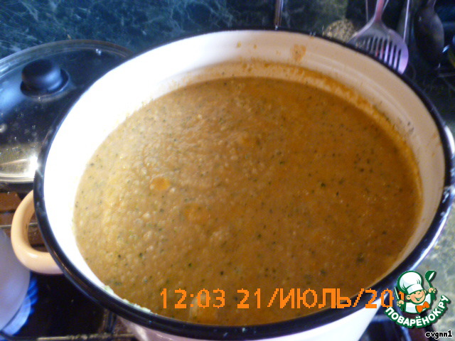 Добавить соль, сахар, масло,пасту, майонез и варить 1 час, за 10 минут до конца варки положить перец и лавровый лист (его потом надо убрать). При варке масса сильно "плюется", поэтому кастрюлю лучше закрывать крышкой.