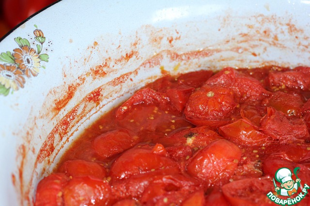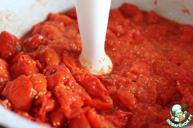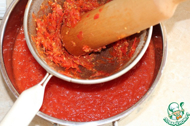 Томаты измельчить хоть блендером, хоть мясорубкой. Можно и пропустить этот шаг, но мне кажеться, что измельчёные быстрее протираются.