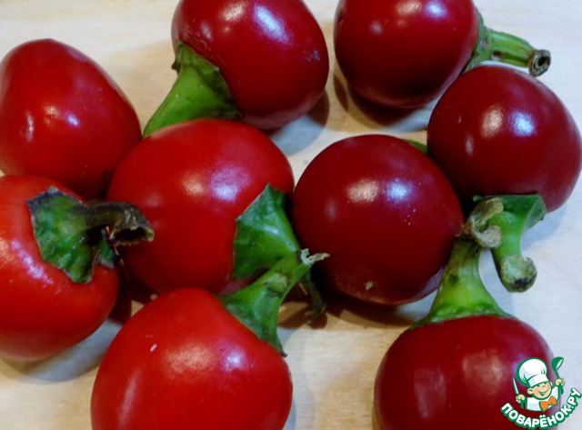 | Пикантная закуска для любителей остренького. Как правило, очень нравится мужчинам. Готовится просто и быстро. Такие перчики я привезла в прошлом году из Венгрии, посадила их семена, и в этом году я собрала урожай: 2 ведра маленьких кругленьких остреньких перчиков. |