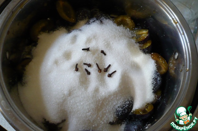 Кладем сахар, аспирин, корицу, гвоздику и перемешиваем.