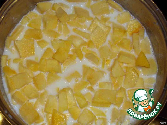 Тыкву забрасываем в молоко и варим до полу готовности.