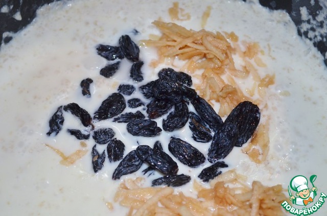 Добавить яблоко, изюм, сливки и дать настояться на режиме Подогрев 10 минут.