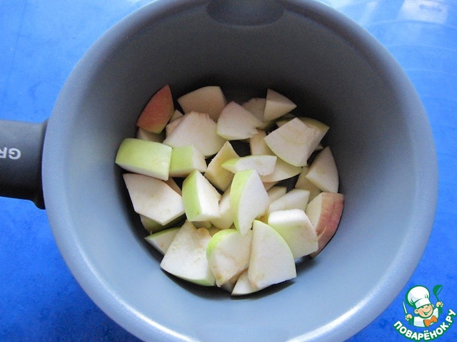 Яблоко почистить, вырезать сердцевину, нарезать крупными кусочками.