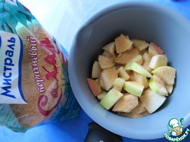 Поместить яблоки в небольшую кастрюлю, поставить на огонь, добавить 4 столовых ложки коричневого сахара (по вкусу), гвоздику, корицу, бадьян, перемешать, влить 50 мл горячей воды.