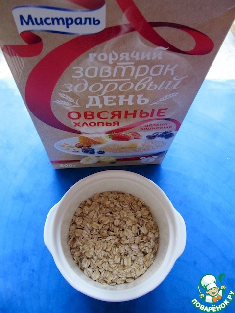Овсяные цельнозерновые хлопья залить кипящим молоком или водой, добавить щепотку соли.