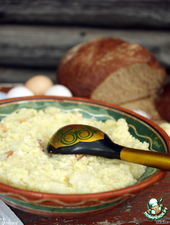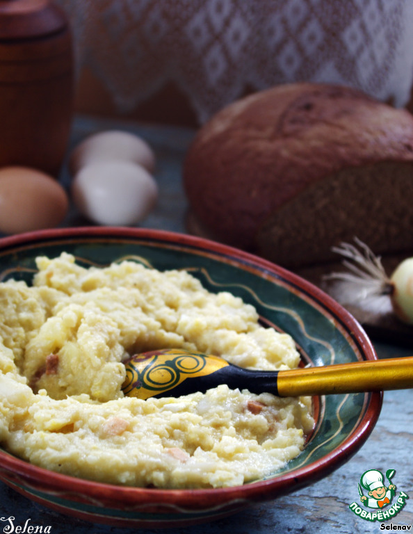 Этот рецепт мне рассказала бабушка (Мария Ивановна), которая родилась, выросла и живет в деревне. Такую кашу (кулеш) они часто готовили в поле, когда косили траву или жали хлеб. Ее готовили, когда небольшим количеством продуктов нужно было накормить много людей. Это сытное и простое блюдо было частым гостем во времена молодости моей бабушки.