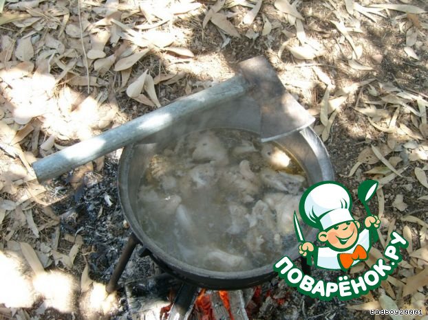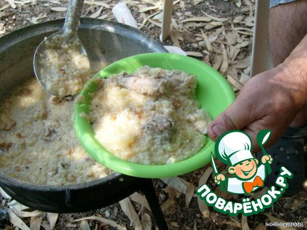 | Еще один из рецептов магрибской кухни. Иногда с друзьями собираемся на природу, не на шашлыки, а варим простую полевую кашу. Все продукты беру на глазок, кроме одной целой курицы, и заменил пшено на кускус, отчего кашка только выиграла. |