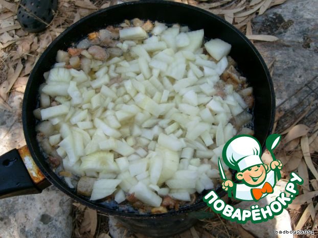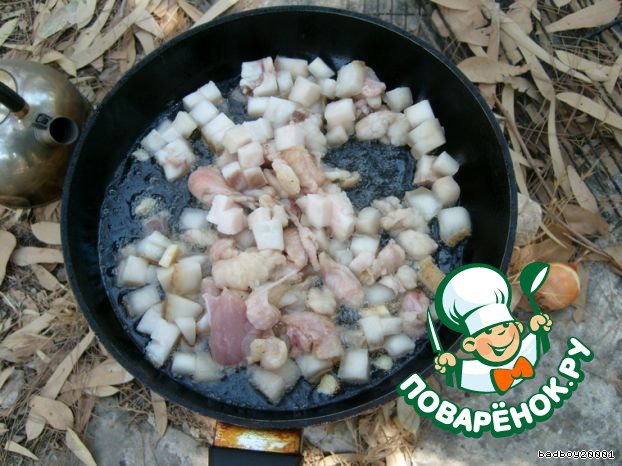 Жарим нарезанное на кусочки САЛО, когда сало вытопилось, добавляем ...