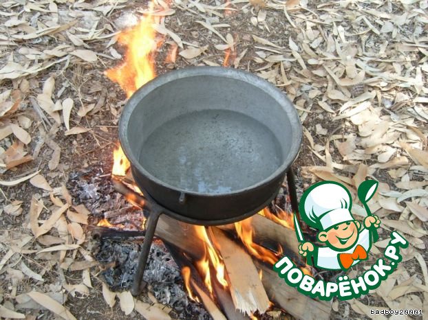 Главное - поддерживать огонек в костре. Параллельно на отдельном костре делаем зажарку