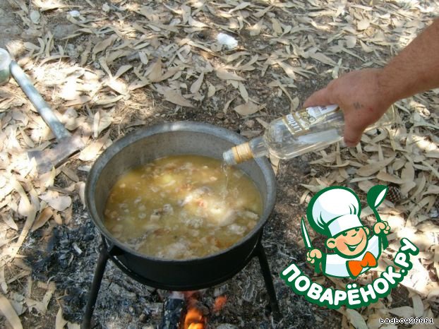 Добавляю в казан на глаз грамм 50 водочки для аппетиту