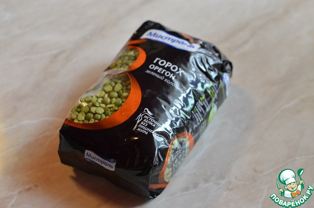 Отмерить нужное количество гороха, и сварить по инструкции указанной на упаковке. Поместите горох в кастрюлю с водой в соотношении 1:2, доведите до кипения, после закипания варите до готовности 30-40 минут на слабом огне.