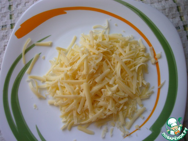 Посыпать куски тертым сыром. Рядом столовой ложкой выложить остатки сыра, из них получатся прекрасные сырные чипсы, которыми можно будет украсить порции поленты.