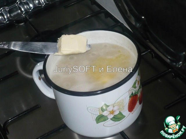 За 5мин. до окончания варки в овсяную кашу я добавляю сливочное масло. Потом снова накрываю кашу крышкой и даю маслу растаять. Сахар я не добавляю, т. к. груша "отдает" в кашу свой вкус и запах.