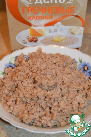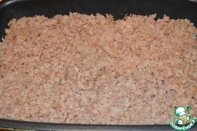 Сверху выложить гречневые хлопья и разровнять поверхность.
