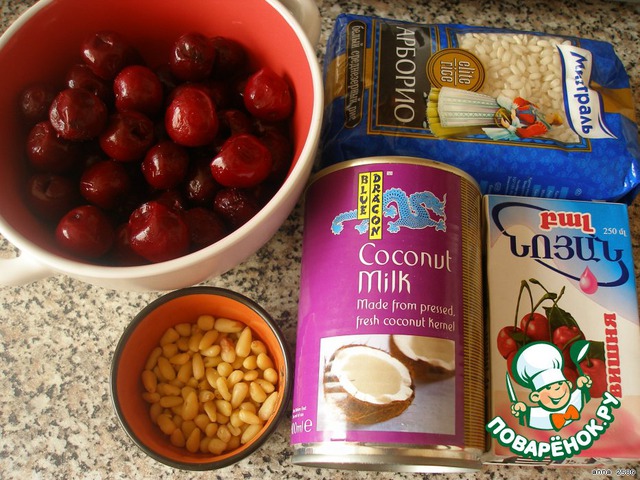 Подготовим необходимые продукты. Вишню, если она заморожена, необходимо разморозить и удалить косточки. Если у вас кедровые орешки в скорлупе, то ее необходимо очистить.