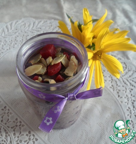 Для приготовления каши понадобятся баночка объемом 0,3-0,5 литра. Все ингредиенты кладем в кашу по вкусу. Насыпаем в каждую баночку на 1/4 часть Гуркулесом ТМ "Мистраль"