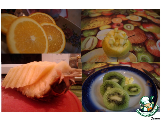Нарезаем фрукты (не обязательно те, которые приведены выше, можно положить все, что нравится.)