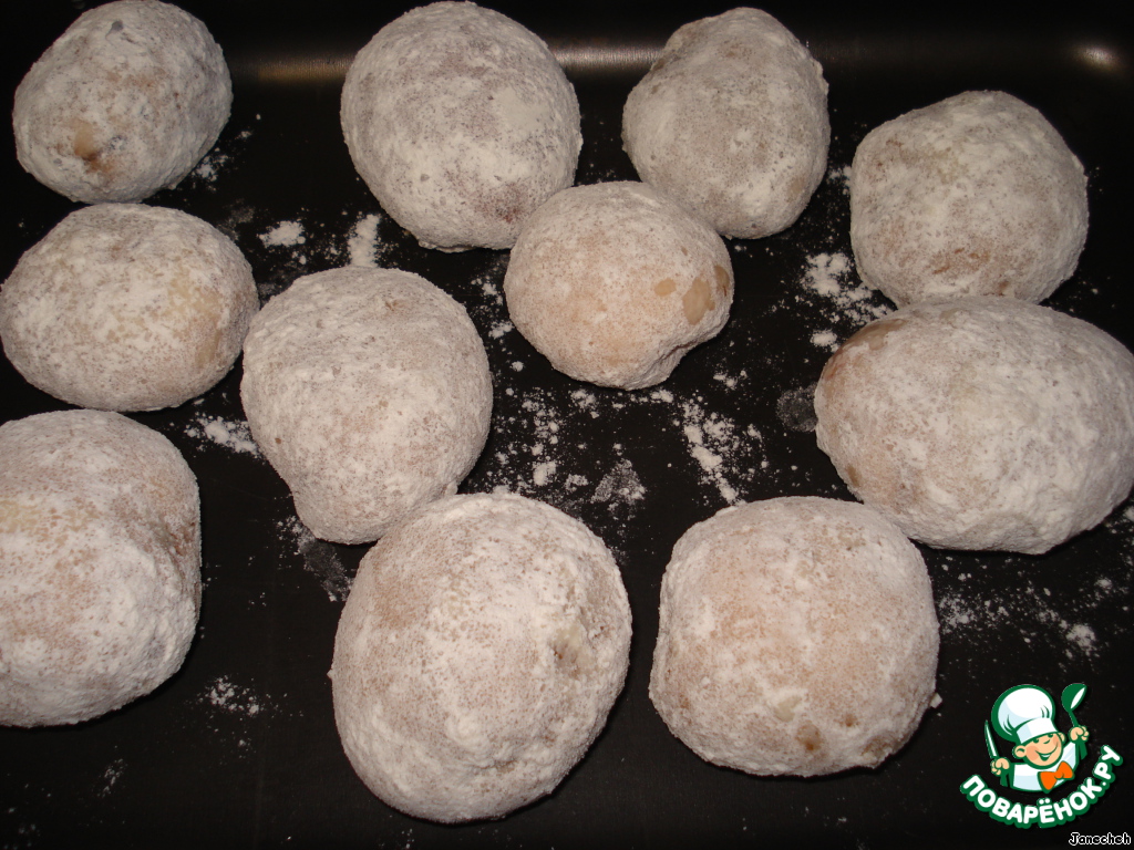 Все просто. Берем картофель, обязательно мокрый, и обваливаем в мучной смеси. Выкладываем на противень и ставим запекать в духовку при температуре 180-190 градусов примерно около часа, все зависит от размера картофеля.