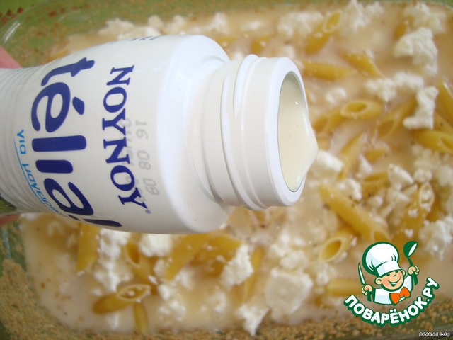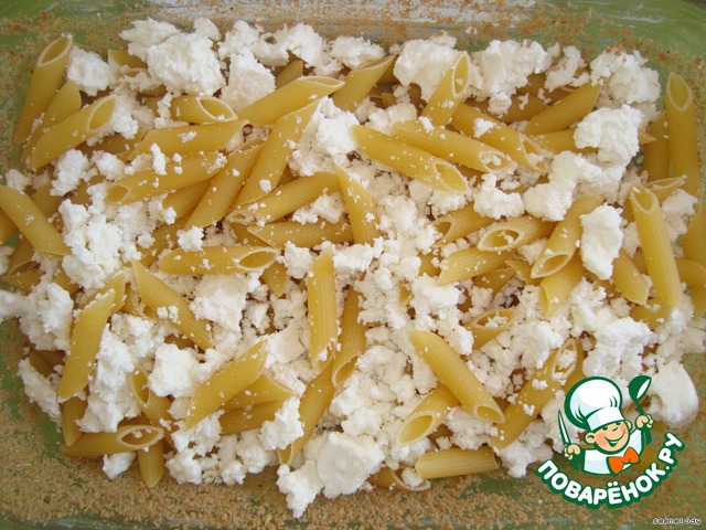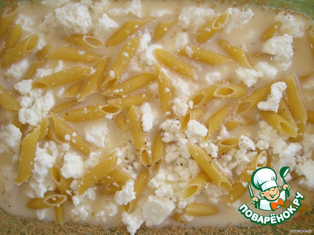 3. Сверху макарон раскрошить фету и слегка перемешать.