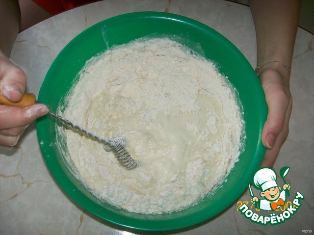 Когда тесто будет полностью вымешено, добавить соду (не гашеную) и еще раз тщательно размешать, чтобы сода полностью растворилась.