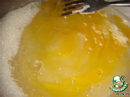 Яйцо перетираем с сахаром и щепоткой соли. Если кто любит сладкое – рекомендую добавить еще 1 ст.л. сахара.