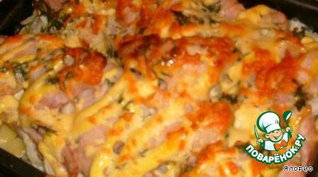 | Не знаю, откуда такое название. Но охотников вкусно покушать у меня целых три, да и мне кусочек от этой вкуснятинки перепадает!Готовится блюдо в течение часа, а большой плюс в том, что на кухне дама может провести из этого времени 15 минут, сунуть форму в духовку и заниматься другими накопившимися делами - Ужин охотника с охотой готовится сам!Это проверенный способ без особых затей сытно накормить семью вкусным ужином. |