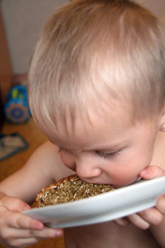 Жаль папа наш еще спал, когда я пыталась заснять результат приготовления, иначе сфотографировал бы. Происходило это с сидящим у меня на спине ребенком, отчаянно стучащим кулаком по макушке с воплем - "Мама, дайте наконец пожрать!" (или в его варианте: "абдь бдь бдь адай дай дай" )