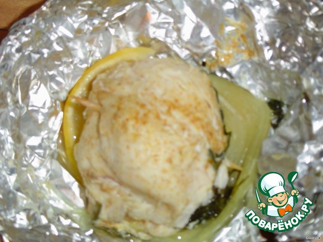 Сворачиваем филе в рулетик и закрепляем зубочисткой.