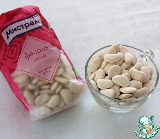 Отмерить один стакан фасоли "лима" от "Мистраль".