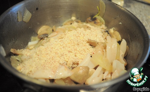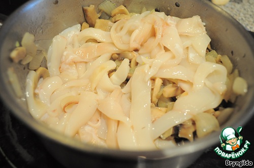 | Замечательное сочетание грибов и кальмаров, подчеркнутое тонким вкусом арахиса, сделает Вашу трапезу незабываемой и приятной! |