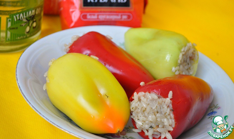Вот так подается это блюдо в качестве закуски в отеле. Примечательно, что перцы хороши и как гарнир, и как закуска - рассыпчатая и ароматная начинка из великолепного риса Мистраль никого не оставит равнодушным.